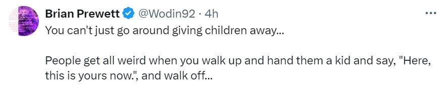 当你走过去,把孩子递给别人,说‘拿去吧,这是你的了’,然后走开时,人家会觉得很奇怪的……”