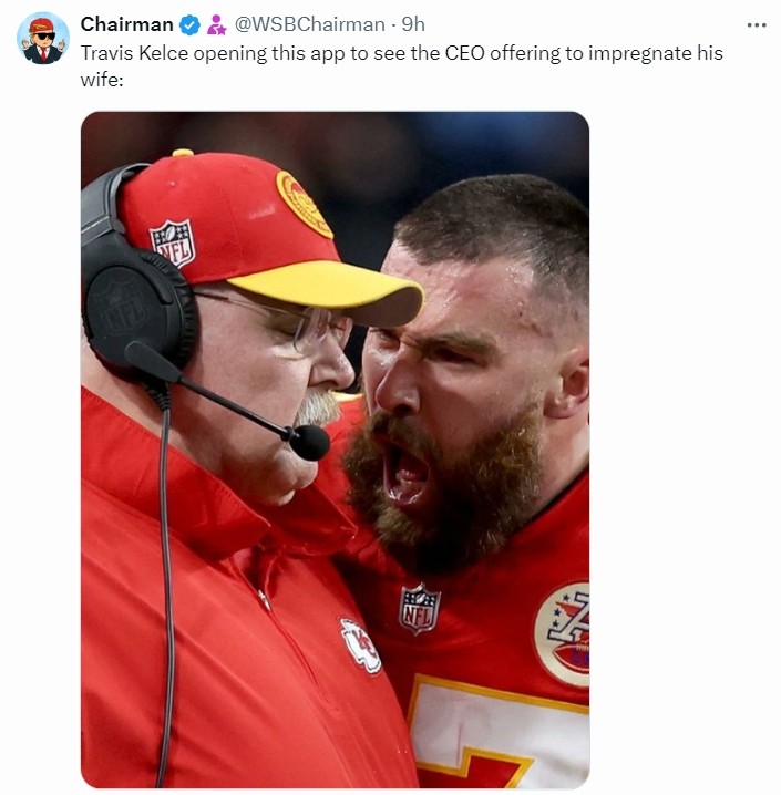 “特拉维斯·凯尔斯(霉霉男友)打开这个app,看到它的CEO提出要让他的老婆怀孕时:”