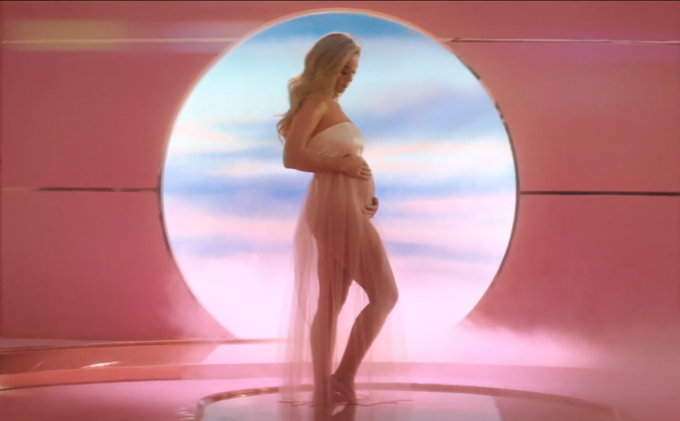 在颁奖前的表演名曲串烧环节,水果姐演出了《I Kissed a Girl》、《Teenage Dream》和《E.T》,还有她马上要发行的单曲《I Am His, He His Mine》。