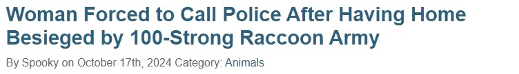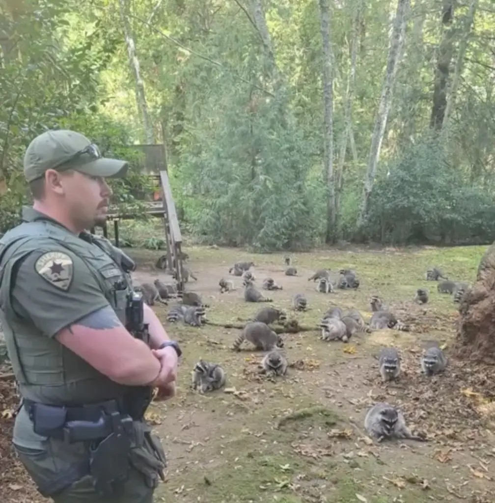 “来到现场的警察大吃一惊。他们从来没有见过这么多浣熊聚集在一个地方。”