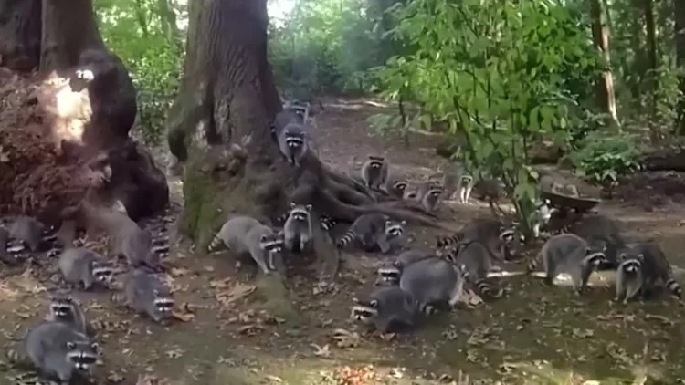 数十只浣熊聚集在她家林木茂密的后院里,包围了她家,而且变得“具有攻击性”。