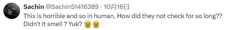 “这也太可怕了、太野蛮了。这家人怎么会这么长时间都没检查过?难道不臭吗?yue了!”