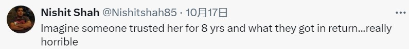 “试想一下,有人信任了她8年,换来的却是……这真的太可怕了。”