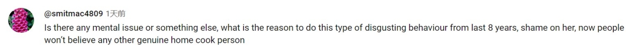 “她是有精神问题吗,还是其他什么原因?是什么导致她在过去8年里,一直做这种令人作呕的行为,真是可耻,现在人们不会再相信其他认真工作的做饭阿姨了。”
