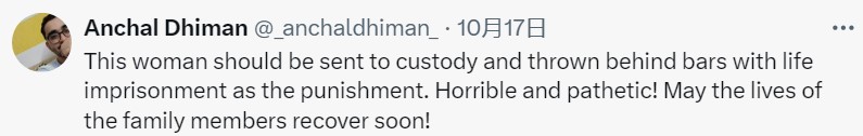 Reena这段视频被曝光后,在社交媒体上疯传。她无耻的行为遭到了无数网友的谴责:
