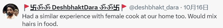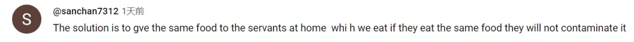 “我们家的女厨师也做过类似的事,把她的头发混进了食物中。”