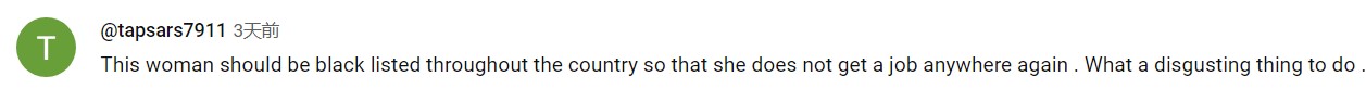 “全国都应该把这个女人列入黑名单,这样她就再也找不到工作了。这事干得真让人作呕。”