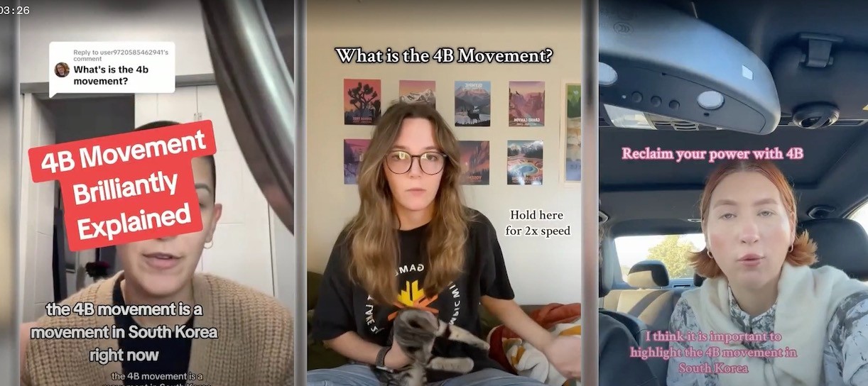 面对tiktok等社媒上兴起的“4B运动”热潮,部分男性也注意到了趋势。