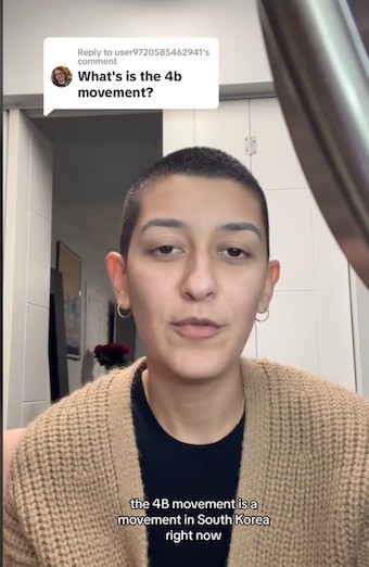 今年3月,30岁的tiktok博主Aleisa Mora率先在社媒上介绍了韩国的“4B运动”,收获了近600万的点击量,也引发了相当多美国女性的共鸣和支持。