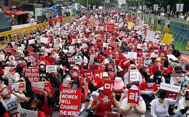 “4B运动”兴起于2017年,最初被韩国女性组织用于抗议针对女性的偷拍和猥亵风潮。(这个我们详细写过,戳此回顾)
