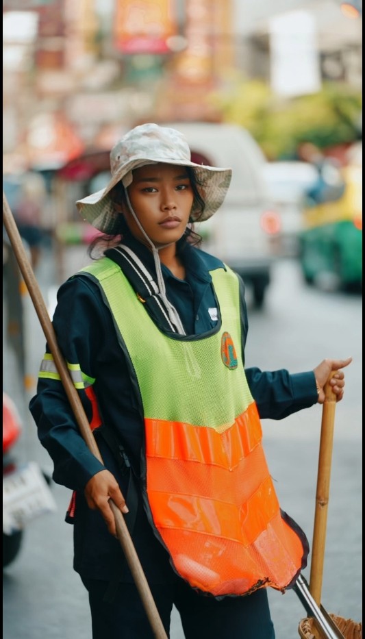 上个月,俄罗斯摄影师Semyon Rezchikov在曼谷的唐人街寻找灵感,刚巧就碰到了这位清洁工,电光火石一瞬间,为她拍下了这张照片。