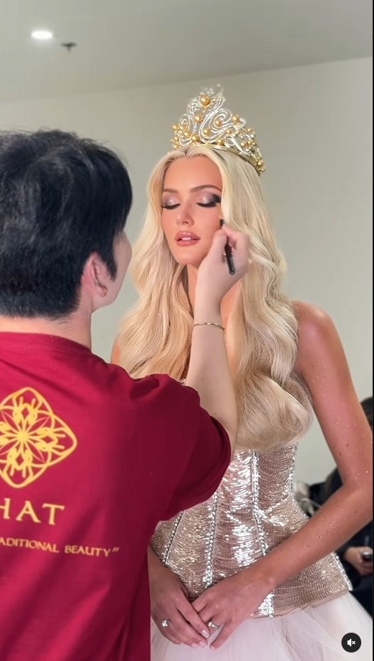 (Nong Chat打造的妆容帮助她拿下了2024年环球小姐)