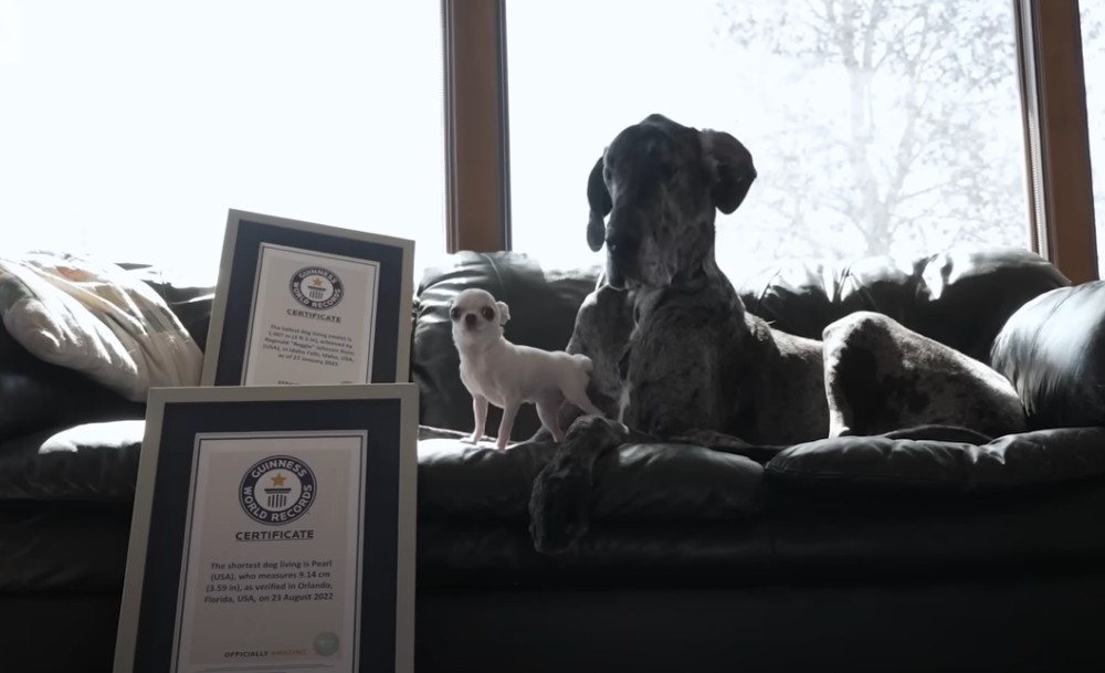 比如就在前段时间,大丹犬雷吉和吉娃娃珀尔就在吉尼斯世界纪录的撮合下成为了一对特别的好友。