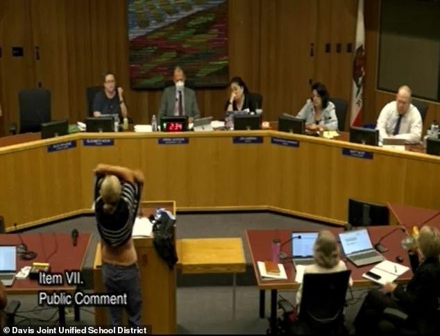 她站在话筒前说,希望校董会成员们能够体会到同学们的感受:当学校规定同学们要在体育课前换衣服,却又允许根据性别认同选择更衣室时,同学们会面临怎样的脆弱。