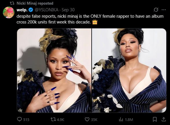 周日,B榜宣布卡老师的新专辑《Am I The Drama?》以流媒体和销量总计20万张的成绩空降B榜TOP200专辑榜冠军宝座,第一周就获得了双白金销量。