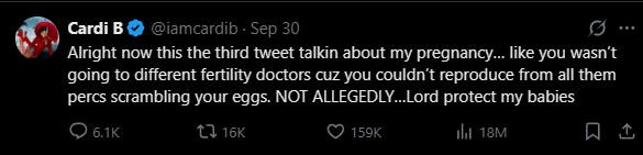 “这已经是你第三条说我怀孕的推文了,说的好像你没有去各种生育诊所做检查似的,你吃了那么多止痛药把自己卵子搞坏,还说起我来了…”