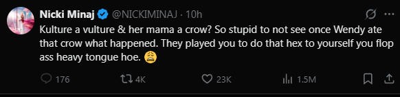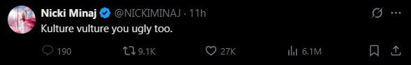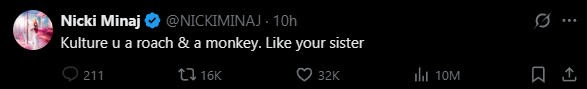 点进去一看,原来指的是Nicki Minaj,麻辣鸡——她跟Cardi B卡老师又撕起来了…