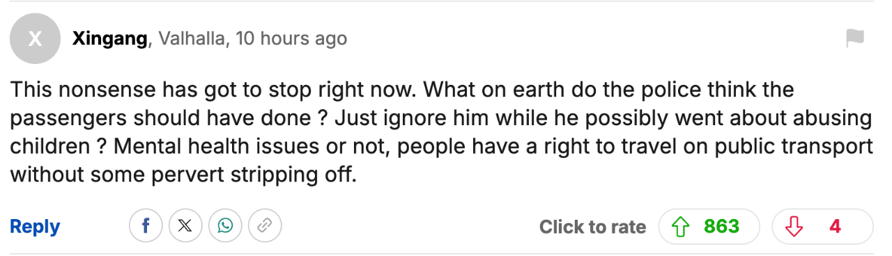 “这种荒唐事必须立刻结束!警察觉得乘客们当时该怎么做?难道要他们装作没看见,让那家伙继续去骚扰孩子?