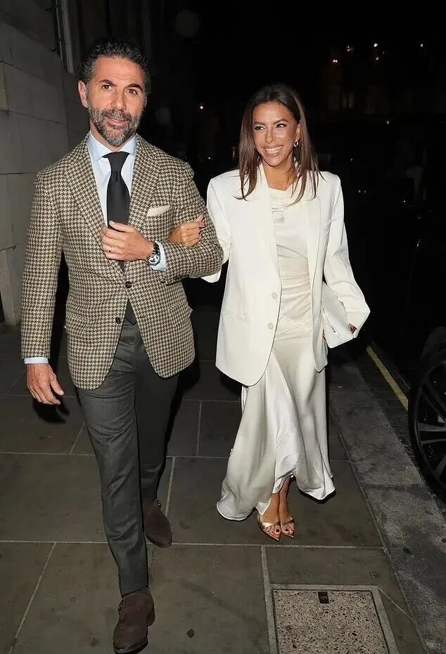 闺蜜团有小七的教母伊娃·朗格利亚,她穿着维多利亚设计的缎面裙,挽着丈夫何塞·巴斯顿入场。