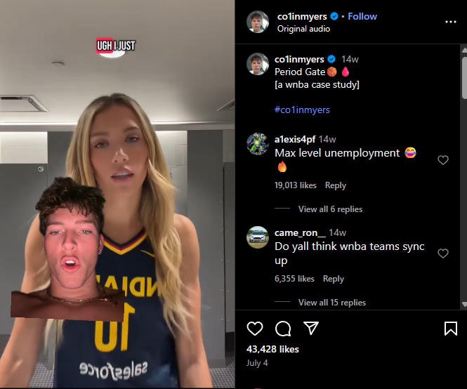 即便如此,@FadeMeBets每回也能说得头头是道,他会分析某位球员是处于卵泡期、排卵期还是黄体期,以此预测她的力量、投篮命中率等等。例如,今年夏天他谈及球员Caitlin Clark时说: