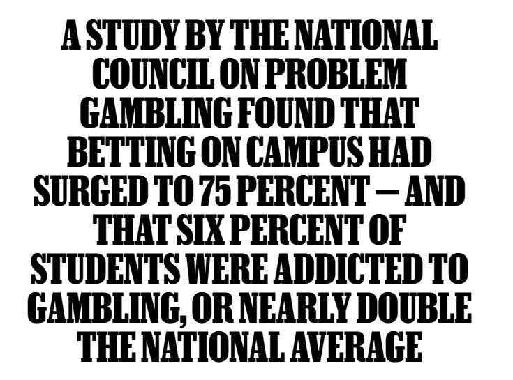 去年,另一项研究发现,校园赌博率已飙升至75%,其中6%的学生已经赌博成瘾。