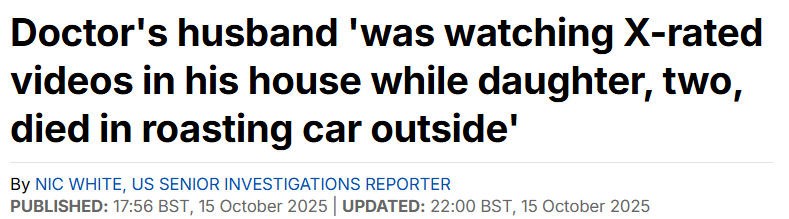 最近,一位美国男子就因为把女儿独自留在车里,导致女孩活活热死,被指控谋杀…..