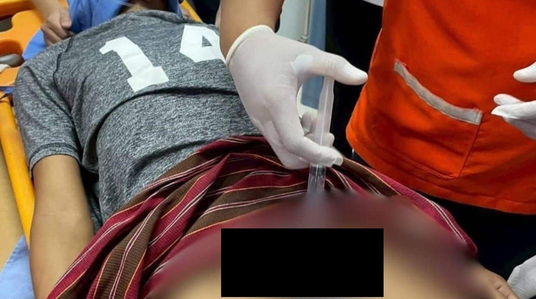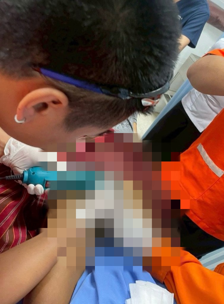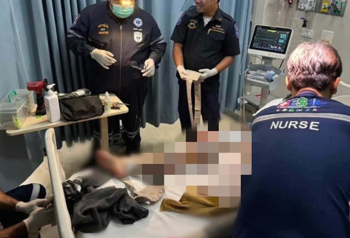 去年在曼谷,另一名男子被送到医院抢救,他在DD上套了11个钢环!