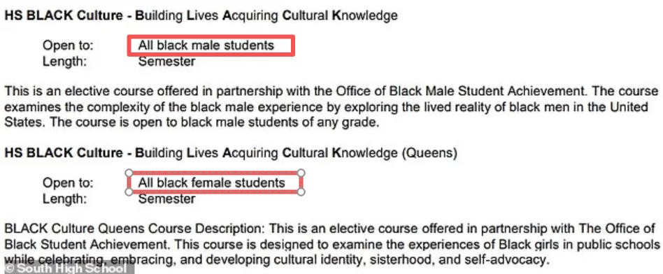 因为除了仅限黑人学生的课程外,该地区的学校还教授批判种族理论、殖民主义、白人至上主义等内容。