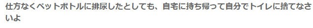 “即使你别无选择,只能将尿液排入塑料瓶中,也应该将瓶子带回家,自行在厕所中处理。”