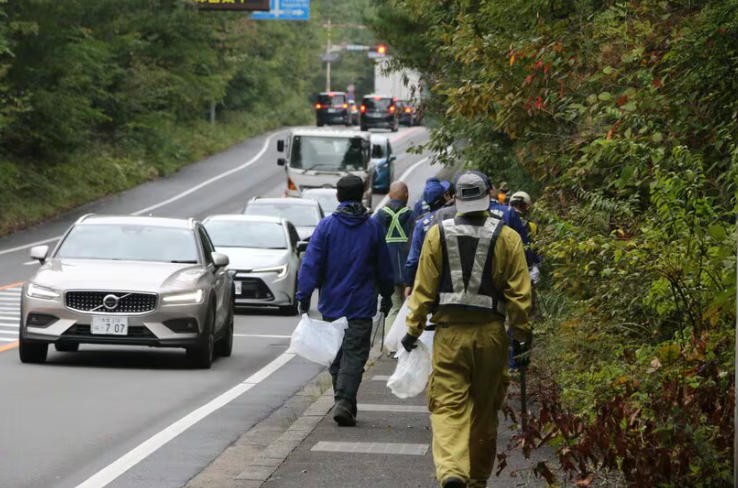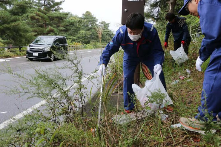 随后,志愿者们从国道转入东富士五湖道路,发现路边的饮料瓶明显变多了。