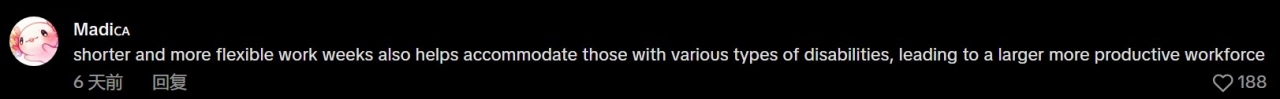 “更短、更灵活的工作周,也有助于照顾不同类型的残障人士,从而形成更庞大、更高效的劳动力队伍。”