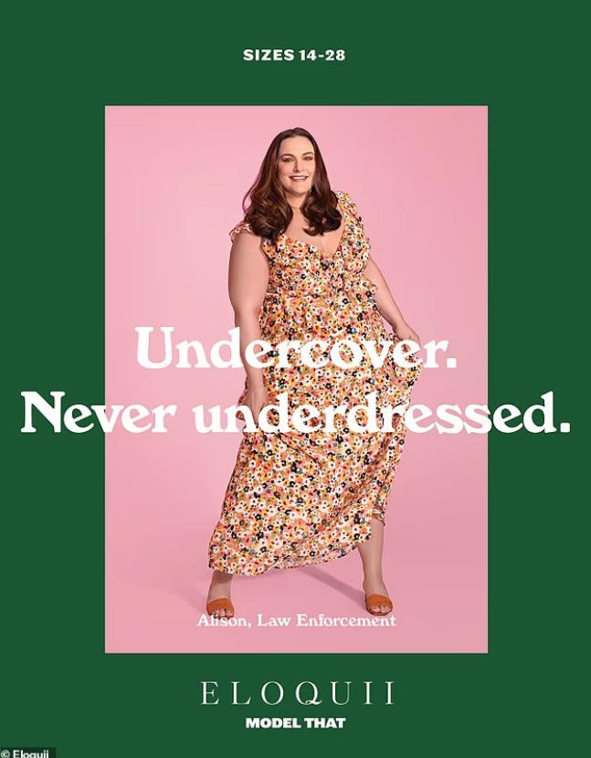 甚至在当特工期间,艾莉森也没放下模特这份职业,为一家大码服装店拍广告时,她就用了“特工”这个讨喜的人设。