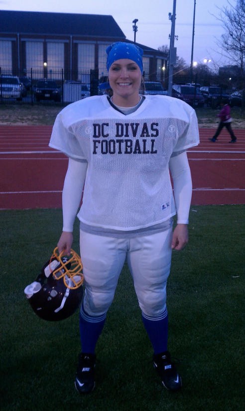 除了泡健身房,她还是华盛顿特区第一支女子橄榄球队的一员,经常参加训练,这项运动也很能锻炼力量和耐力。