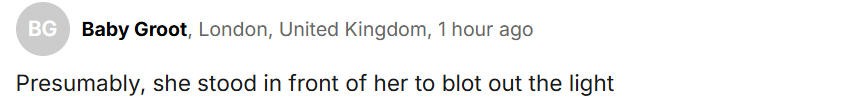 “她站在她面前大概是为了挡阳光。”