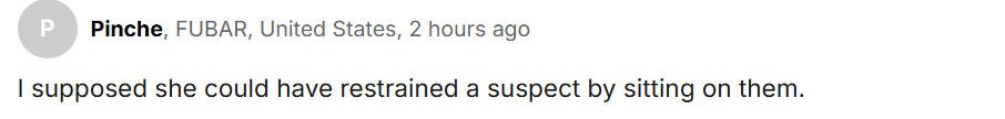 “我猜她坐在嫌疑人身上就能制服他们。”