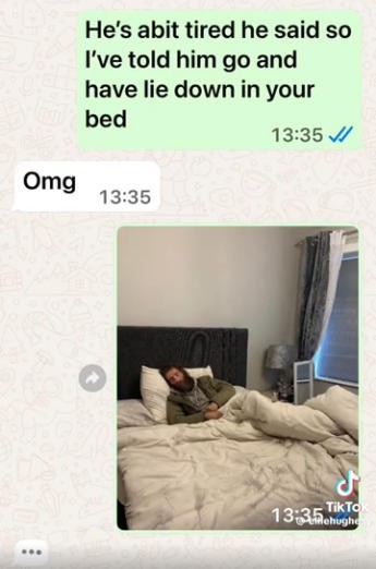 最后孩子贴心地请感到劳累的流浪汉在妈妈床上躺一会儿,