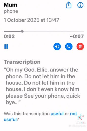 吓得妈妈赶紧打来视频电话,发现女儿没接后,又留了很长一段言,让女儿小心,赶紧离开家里。
