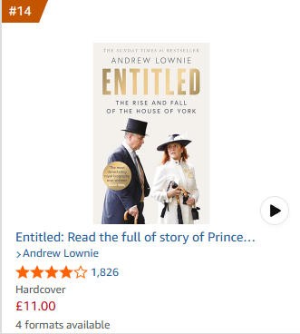 这本传记卖得巨好,目前仍是亚马逊所有图书当中的第14名,王室的脸都被安德鲁丢干净了。