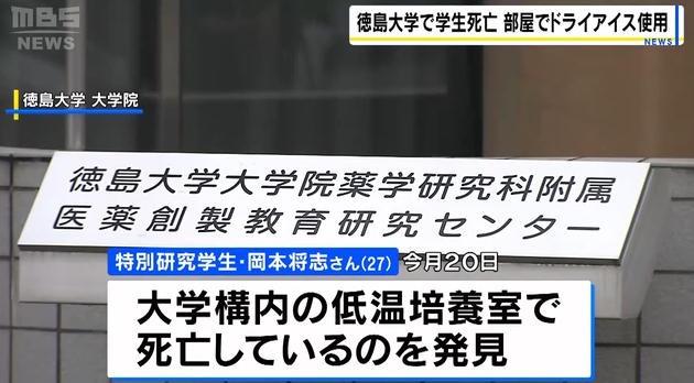 近日,日本德岛大学的药学研究科,发生学生意外死亡事故。