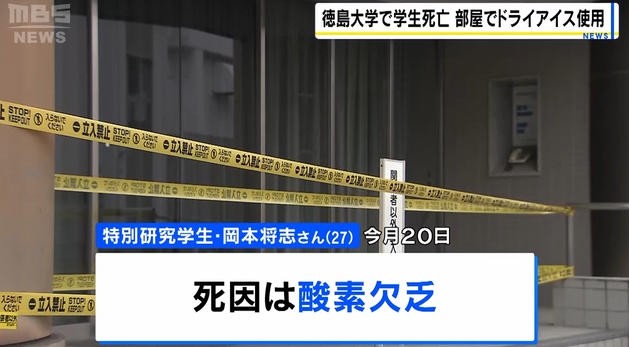 27岁特别研究生冈本将志,于低温培养室内因缺氧窒息死亡。
