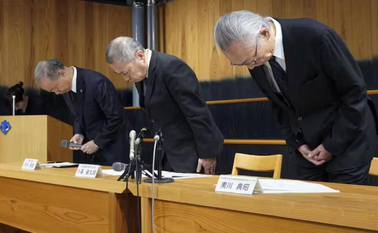 学校方面于10月28日召开记者会,承认安全管理出现严重问题,校长河村保彦等人鞠躬道歉。