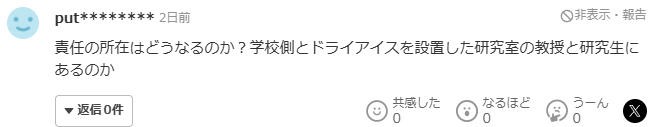 “谁该为此负责?是学校,还是放置干冰的研究室教授和研究生?”