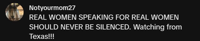 “真正的女性为真正的女性发声,绝对不能被噤声。我在德州关注此事!!!”