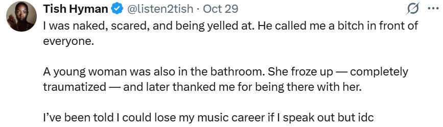 有人跟我说,如果我把这件事说出来,我的音乐事业可能会就此终结,但我不在乎。”