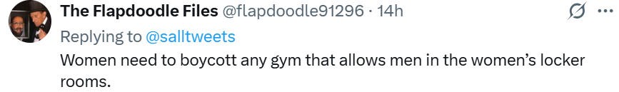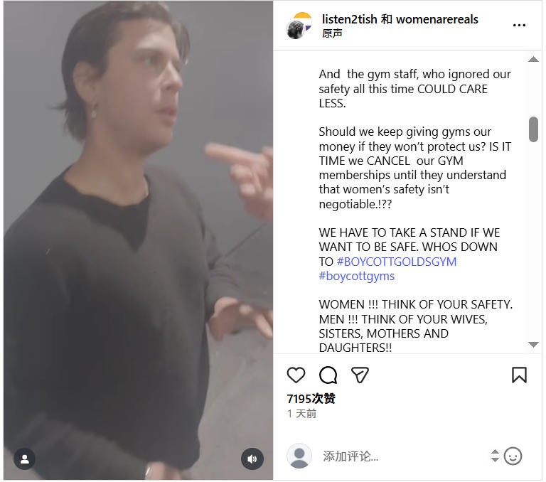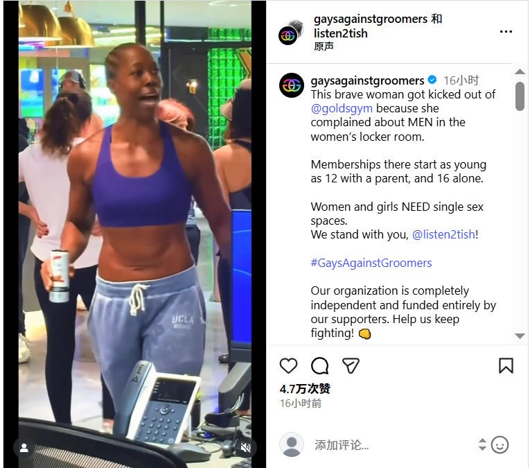 “女性应该抵制所有允许男性进女更衣室的健身房。”