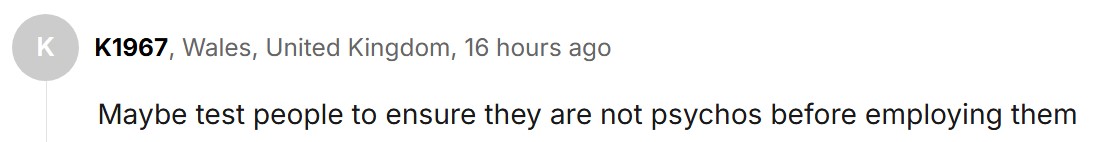 “或许在雇人之前,应该先做个心理测试,确保他们没有精神问题。”