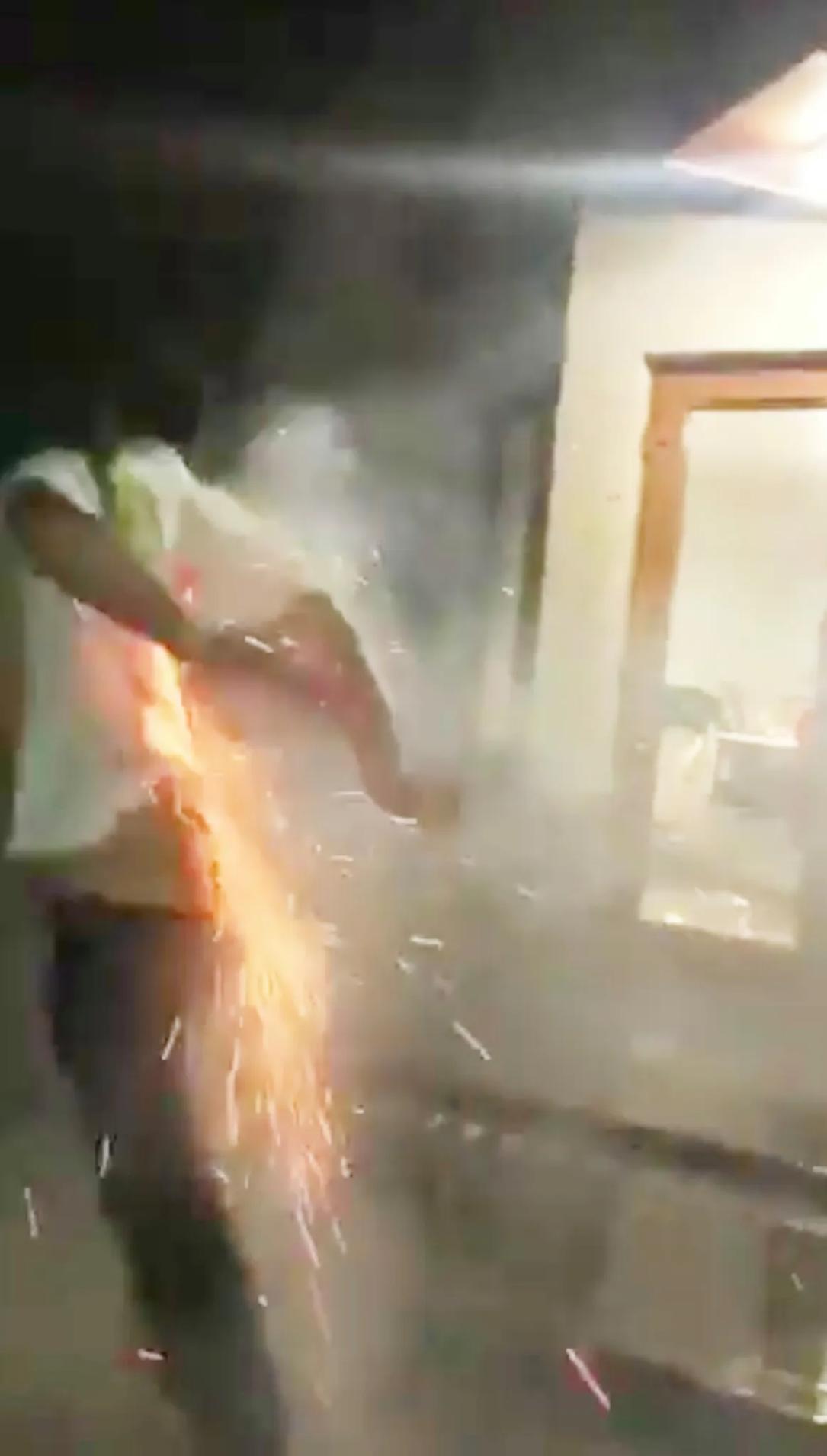 下一秒,火星剧烈喷射,没有任何衣物蔽体,男子被热浪灼痛,猛地直起身子想要逃跑,可烟花一直仍卡在他的屁股里,烫得他尖声惨叫,万幸在爆炸的前几秒掉在了地上。