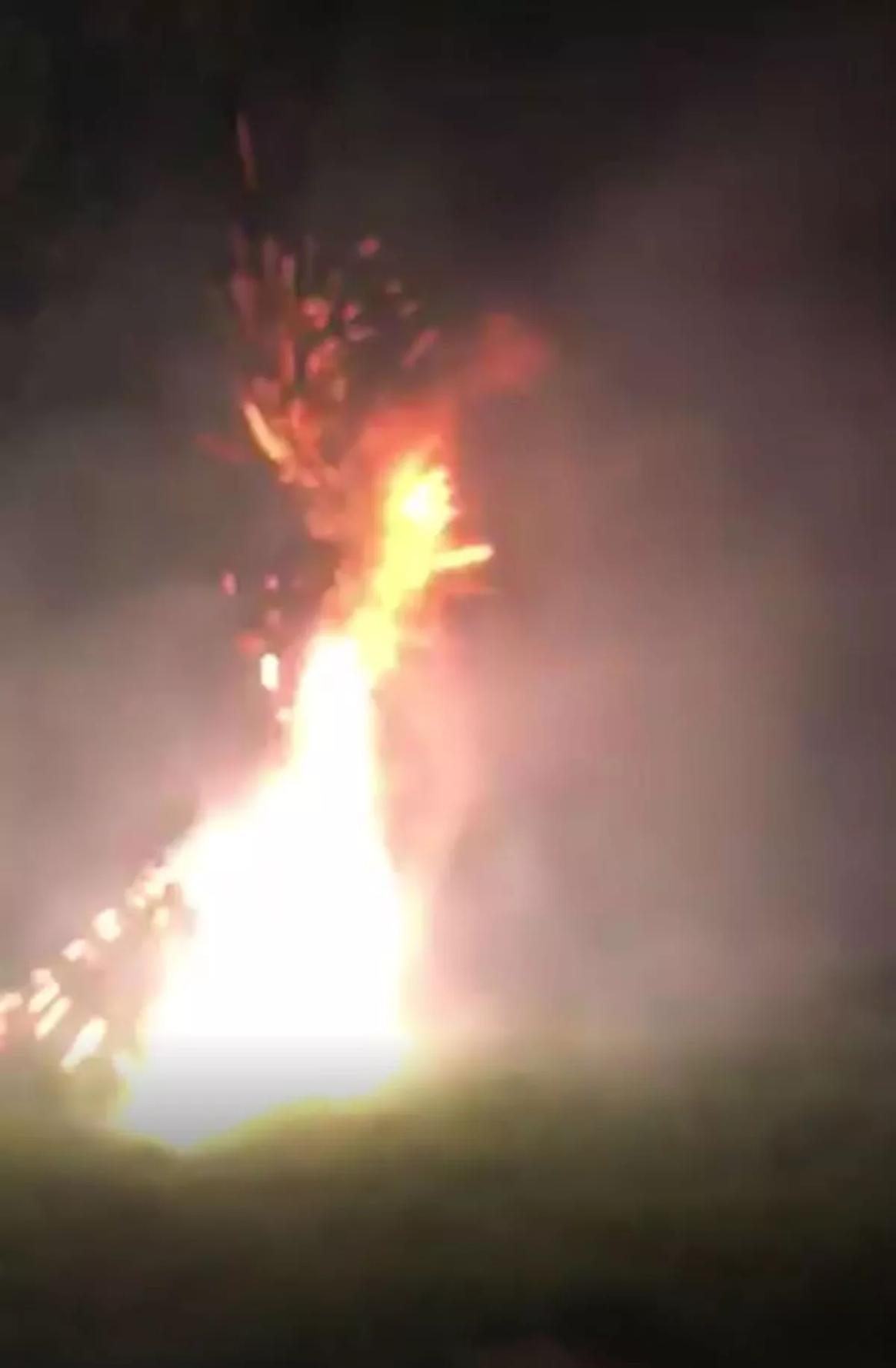 模糊的网络视频显示,引线点燃后,一道刺眼的白光闪过,烟火在几秒内就爆炸,围观者们随即爆发出大笑。