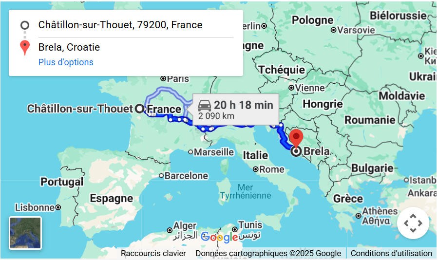 按照他的行车路线,从法国的家出发,途经意大利,最后抵达克罗地亚,足足开了20个小时。