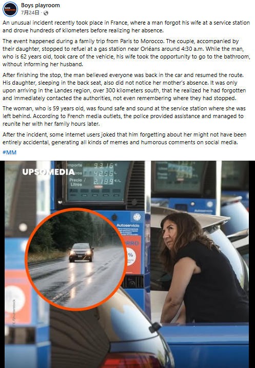 男子给车加完油,没检查人是不是都到齐,直接开车走了,开了很久才察觉老婆没在车上。